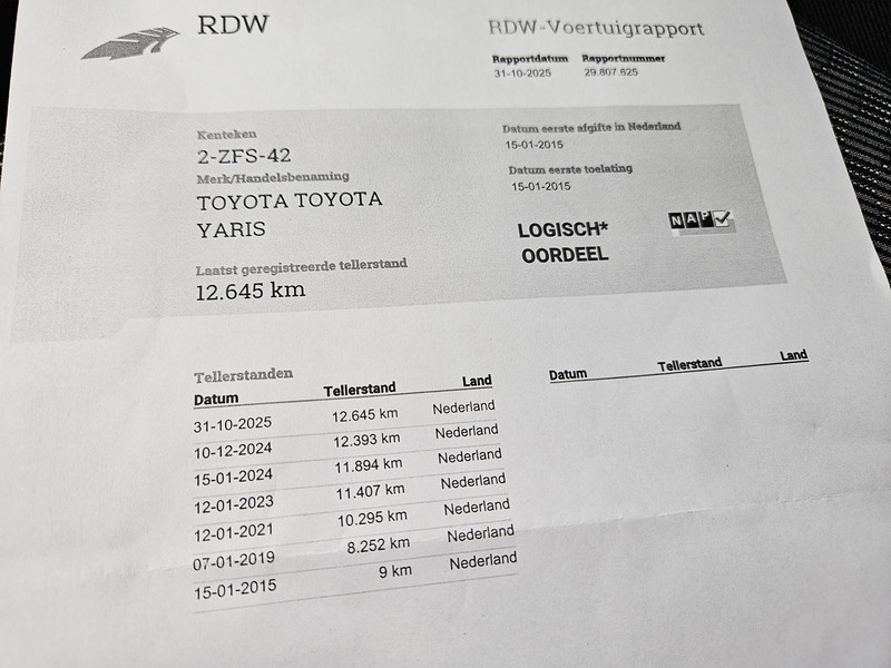 Nieuwstaat Yaris 1.3 van de 1e eigenaresse, origineel NL geleverd, km-stand slechts 12.646km aantoonbaar zie NAP en foto's onderhoudsboekje. Altijd garage gestald en geen schadeverleden, rondom 1e lak. Keurig onderhouden en verzorgd. PRIJS IS VAST MAAR ALL-IN! Dus geen extra verplichte afleverkosten of dure afleverpakketten. Aflevering inclusief: nieuwe APK, volledig nakijken en onderhoudsbeurt, aircoservice, poetsbeurt, tenaamstelling en 6 maanden garantie. Optioneel: 1 jaar Bovag Garantie 450,- (mogelijk op auto's tot 8 jaar). . Uw dorpsgarage sinds 1981 voor Pijnacker-Nootdorp e.o. Klanttevredenheid: ANWB Garagereview 9,8 / Klantenvertellen 9,3 / Fixico 9,4 / Google 4,8 uit 5. Openingstijden verkoop: Ma t/m vr 9u tot 17:30 za tot 14u.
