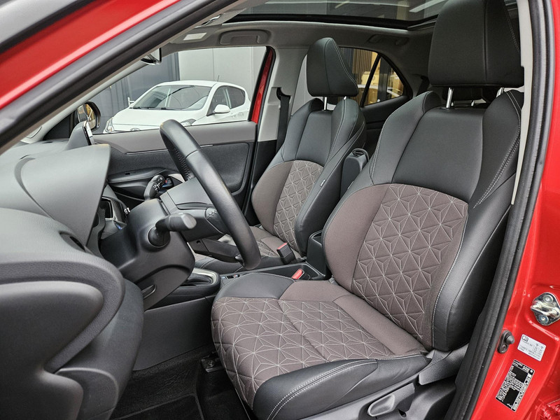 Zeer complete Two Tone (rood met zwart) Toyota Yaris Cross Hybride Automaat van de 1e eigenaar, met het luxe interieur en stoelen, het grotere multimedia scherm en o.a. Head-up Display (HUD) en panoramadak. Uiteraard is deze uitvoering ook voorzien van de optionele parkeersensoren en stoelverwarming. PRIJS IS VAST MAAR ALL-IN! Dus geen extra verplichte afleverkosten of dure afleverpakketten. Aflevering inclusief: nieuwe APK, volledig nakijken en onderhoudsbeurt, aircoservice, poetsbeurt, tenaamstelling en 6 maanden garantie. Optioneel: 1 jaar Bovag Garantie 450,- (mogelijk op auto's tot 8 jaar). . Uw dorpsgarage sinds 1981 voor Pijnacker-Nootdorp e.o. Klanttevredenheid: ANWB Garagereview 9,8 / Klantenvertellen 9,3 / Fixico 9,4 / Google 4,8 uit 5. Openingstijden verkoop: Ma t/m vr 9u tot 17:30 za tot 14u.
